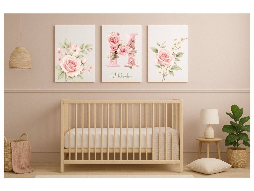 Sada fotoobrazů s písmenem a vlastním jménem - růžová