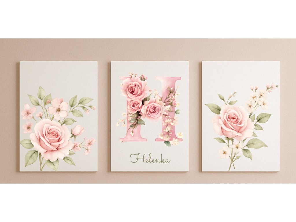 🎨 Styl: akvarelové květiny (růže, kvítka, větvičky), vintage nádech