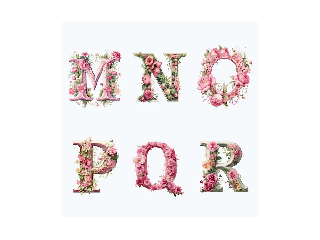 Střední obraz s iniciálou (např. A–F) doplněný o jméno dítěte