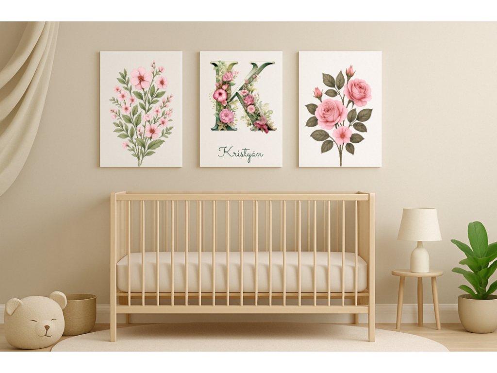 Sada fotoobrazů s písmenem a vlastním jménem - tmavě zeleno/růžová