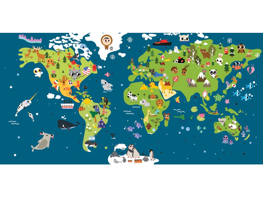 Veselá mapa světa se zvířátky a kulturou